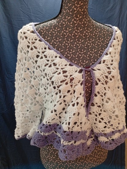 Haut au crochet tricoter à la main de couleur blanc et du mauve