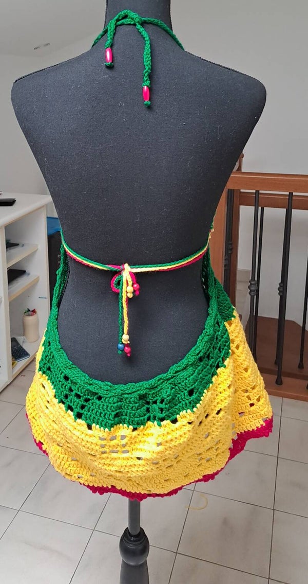 Haut dos nus au crochet de taille M de couleur vert ,jaune’, rouge